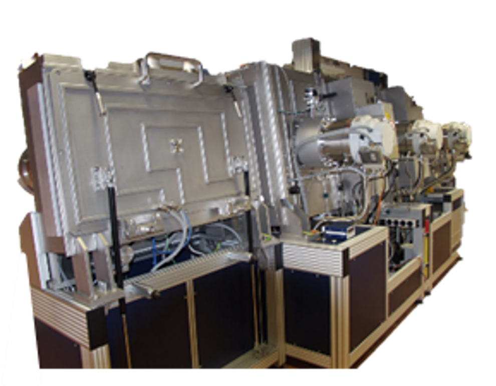 Im dritten Prozessschritt werden transparente leitfähige Oxidschichten (TCO) abgeschieden. Im Referenzprozess werden mit der VISS 600 von Von Ardenne Anlagentechnik Schichten aus Indium-Zinn-Oxid (ITO) auf die Solarzellen abgeschieden (Abb. 6). Aber auch Silberschichten oder andere TCOs wie aluminiumdotiertes Zinkoxid (ZnO:Al) und Indium-Wolfram-Oxid (IWO) können mit der Anlage, die wir LISSy nennen, abgeschieden werden.