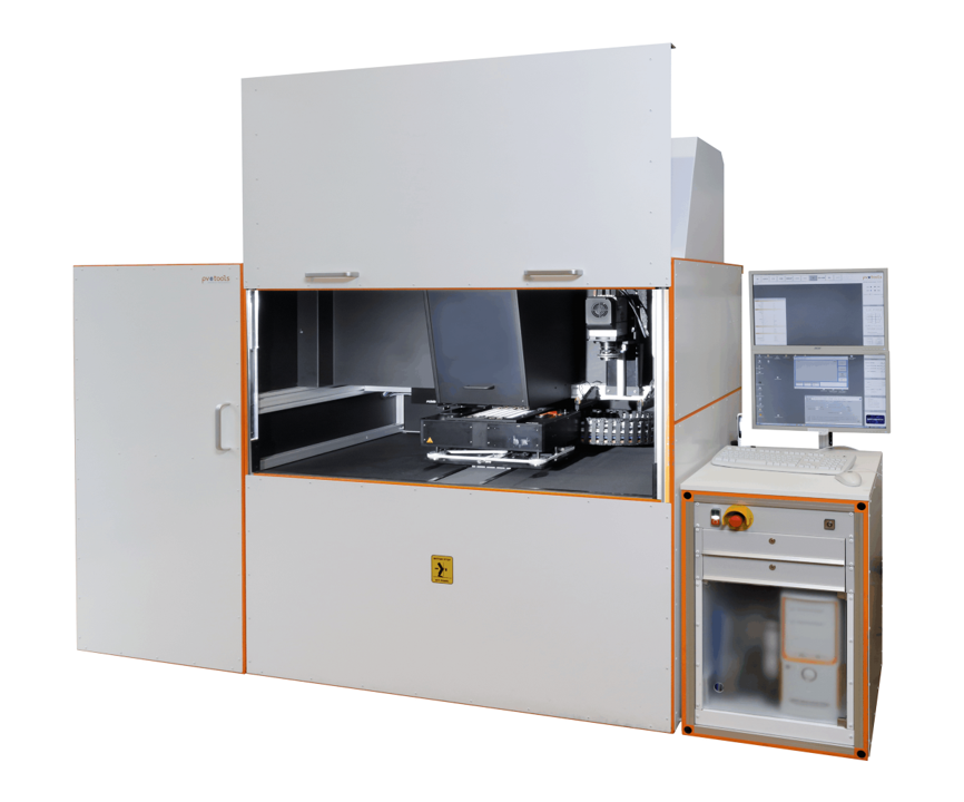 Für die anschließende Charakterisierung der SHJ-Solarzellen steht der LOANA-Messplatz von pv-tools mit der Lichtquelle Sinus-220 von Wavelabs zur Verfügung (Abb. 8). Hier sind z.B. Strom-Spannungs-Messungen (IV) und Messungen der externen Quanteneffizienz (EQE) möglich. Für eine noch umfassendere Analytik steht eine Reihe weiterer Messverfahren zur Verfügung, z.B. Elektro-, Photolumineszenz, QSSPC oder Ellipsometrie.