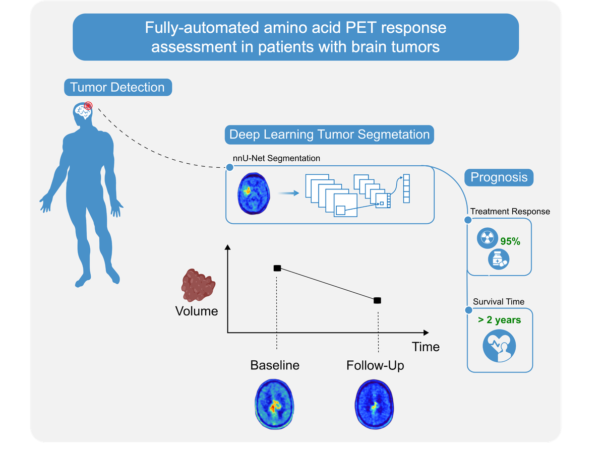 Eine innovative Anwendung der künstlichen Intelligenz bietet eine vollautomatische, benutzerfreundliche und objektive Methode zur Erkennung und Bewertung von Hirntumoren. Der auf Deep Learning basierende Segmentierungsalgorithmus wurde für die Verwendung mit Aminosäure-PET-Scans entwickelt und kann das Ansprechen von Hirntumorpatienten auf die Behandlung mit einer Qualität bewerten, die mit der eines erfahrenen Arztes vergleichbar ist, jedoch in einem Bruchteil der Zeit.