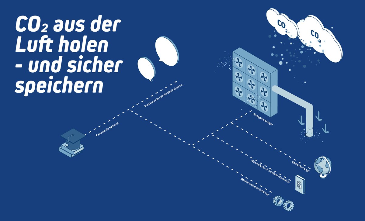 Um die Klimaziele zu erfüllen, reicht die Emissionsvermeidung alleine nicht aus. Es braucht auch Technologien zur aktiven CO₂-Entnahme aus der Atmosphäre – sogenannte Negative Emission Technologies (NETs). Das Verbundprojekt DACStorE nimmt diese Herausforderung an und untersucht, wie Direct Air Capture and Storage in Deutschland systematisch aufgebaut werden kann.