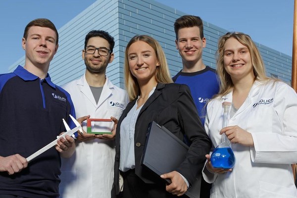Das Forschungszentrum bildet derzeit in 26 insbesondere naturwissenschaftlichen, kaufmännischen und technischen Berufen aus. Die Ausbildung dauert je nach Berufsbild zwischen zwei und dreieinhalb Jahren. Berufsschulstandorte sind in Jülich, Stolberg, Aachen und Düren. Neben den vorgegebenen Ausbildungsinhalten vermittelt das Forschungszentrum für den jeweiligen Ausbildungsberuf spezifische Kenntnisse und Fertigkeiten. Ebenso zum Jülicher Lehrplan gehört die Vermittlung fachübergreifender Kenntnisse, z.B. im Bereich des Qualitätsmanagements. Um Auszubildenden einen guten Start ins Berufsleben zu ermöglichen, bietet das Forschungszentrum bei erfolgreichem Abschluss der Ausbildung eine Weiterbeschäftigung für drei oder sechs Monate an. So können sie sich gezielt auf dem Arbeitsmarkt orientieren und bewerben – auch auf Stellen im Forschungszentrum. Weitere Informationen zu den Ausbildungsberufen, Voraussetzungen, Bewerbungsverfahren und Ablauf der Ausbildungen erteilt die Zentrale Berufsausbildung des Forschungszentrums.