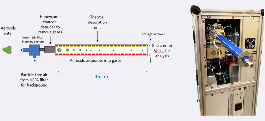 Our group has long standing expertise in chemical ionization mass spectrometry using different reagent ions to detect compounds from highly volatile (H3O+ as reagent ion, PTRMS down to intermediate and lower volatility (NH4+ , Br-, I- as reagent ions). Using CIMS techniques we can detect complex mixtures in real-time, without chromatography, thus providing fast time response at sub-ppt limits of detection for a diverse range of compound classes. The rugged and compact design of CIMS makes it an ideal, versatile instrument for sampling air at targeted locations using various airborne and mobile platforms. Recent purchases include the VOCUS coupled to a volatility inlet for aerosol called VIA to measure simultaneously gas- and particle-phase compounds and investigate their partitioning in ambient mixtures.