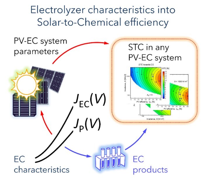 Development of photovoltaic–electrochemical (PV-EC) systems for energy storage and industry decarbonization requires multidisciplinary collaborative efforts of different research groups from both photovoltaic and electrochemical research communities. Consequently, the evaluation of the solar-to-chemical or solar-to-fuel efficiency of a new electrolyzer (EC) as a part of a PV-EC system is a time-consuming task that is challenging in a routine optimization loop. To address this issue, a new rapid assessment method is proposed. This method employs power balance requirements to unfold the input EC characteristics into the parameter space of PV-EC systems. The system parameters, composed with the EC output characteristics, yield the solar-to-chemical efficiency attainable by the electrolyzer in combination with any PV device under any irradiance at any relative PV-to-EC scaling and any mode of power coupling. This comprehensive overview is achieved via a mathematically simple conversion of the EC characteristics in any spreadsheet software. The method, designed to streamline the development and minimize the efforts of both the photovoltaic and electrochemical communities, is demonstrated via the analysis of CO2-reduction electrolyzer characteristics and verified with dedicated PV-EC experiments.