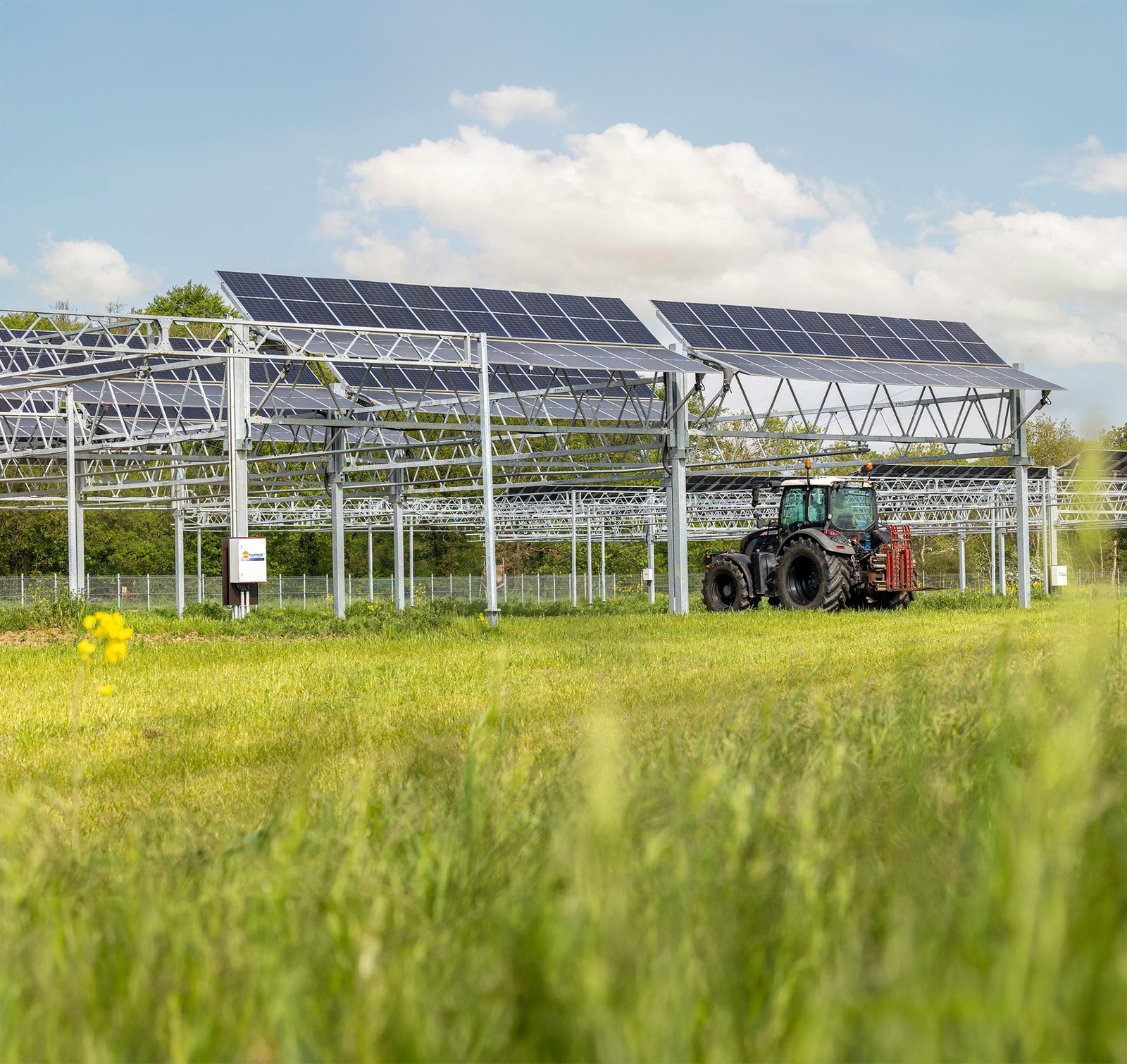 Agrivoltaics combines agriculture with the generation of solar power on the same area of land. Photovoltaic (PV) modules are installed above arable land, allowing food crops or renewable raw materials to be grown at the same time. This smart dual use reduces competition for land and makes an important contribution to climate protection, the energy transition, and the preservation of biodiversity.