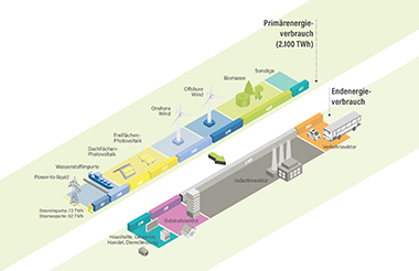 Deutschland als Europas größte Industrienation wird in Zukunft den größten Bedarf an Strom und an Wasserstoff haben, mit Anteilen von 11 Prozent am Gesamtstrombedarf unter Berücksichtigung des Strombedarfs zur Wasserstoff-, Wärme- und Kraftstofferzeugung und 21 Prozent am Gesamtbedarf für Wasserstoff. Die auf 2045 vorgezogene Treibhausgasneutralität in Deutschland befeuert den Ausbau der erneuerbaren Energien auch in den anderen europäischen Ländern durch zusätzlich entstehende Strom- und Wasserstoffimporte nach Deutschland. Dabei wird Deutschland 35 Prozent seines Strombedarfs und 80 Prozent seines Wasserstoffbedarfs importieren, wodurch der Ausbau zusätzlicher Kuppelkapazitäten von 90 Gigawatt für Strom- und 200 Gigawatt für Wasserstoff notwendig werden. Die mittleren Stromgestehungskosten innerhalb Deutschlands werden im Jahr 2030 etwa 7 Cent pro Kilowattstunde und im Jahr 2050 etwa 5 Cent pro Kilowattstunde betragen. Mittlere Wasserstofferzeugungskosten innerhalb Deutschlands können für das Jahr 2050 mit etwa 3 Euro pro Kilogramm abgeschätzt werden.
