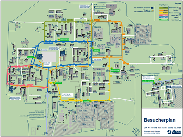 Der Campusplan für mobilitätseingeschränkte Personen gibt Informationen über barrierefreie Zugänglichkeiten von Gebäuden und WCs.