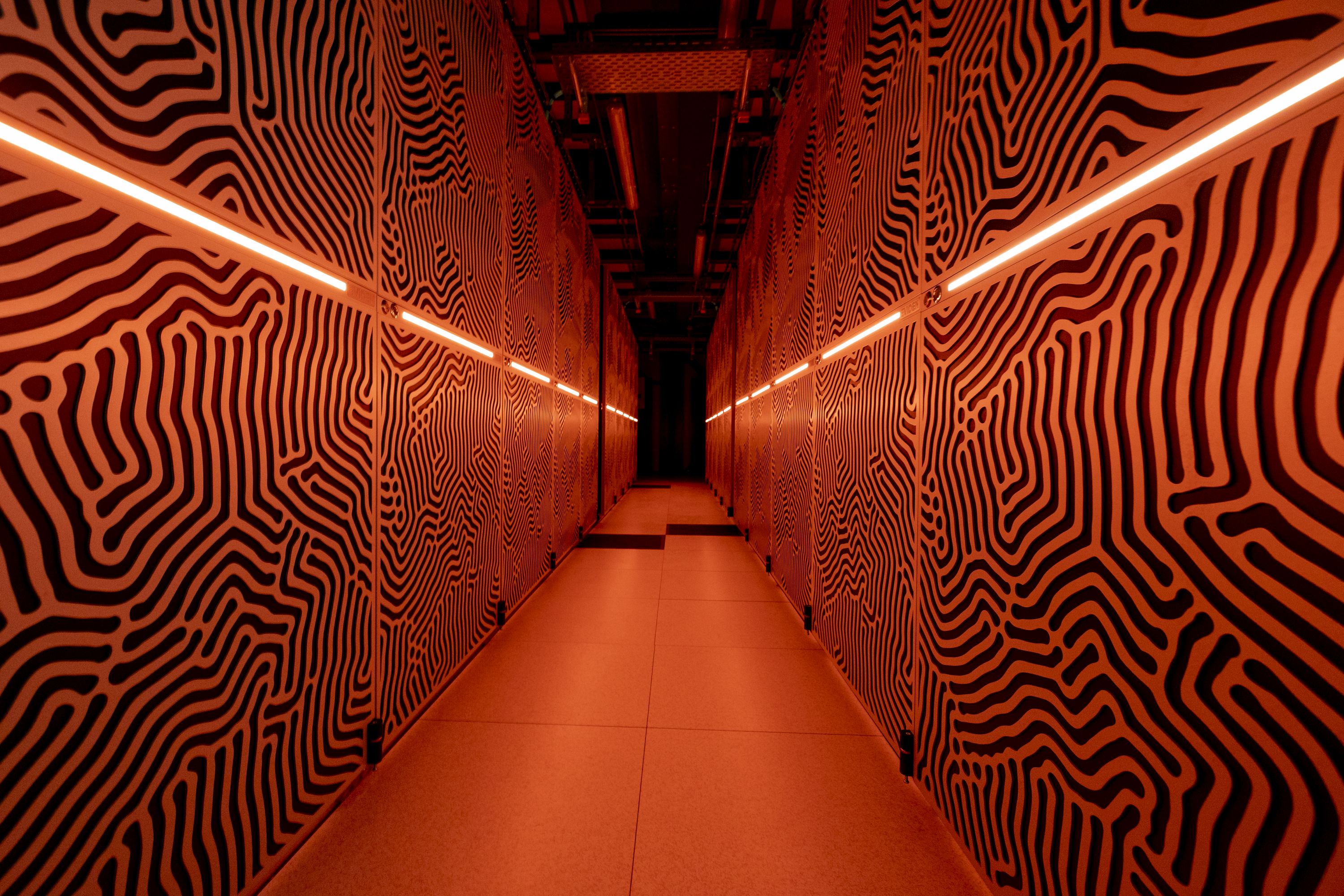 Blick zwischen die Reihen mit JUPITER-Racks. Copyright: Forschungszentrum Jülich / Sascha Kreklau