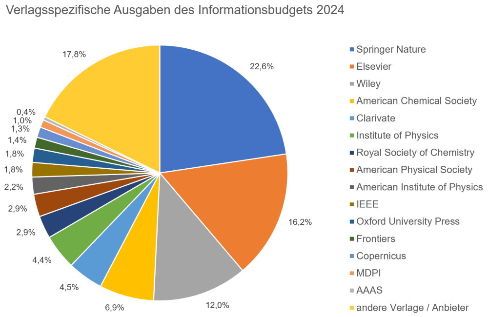 Abbildung 4: Informationsbudget der Zentralbibliothek des Forschungszentrums Jülich – Darstellung der verlagsspezifischen Ausgaben des Informationsbudgets für das Jahr 2024