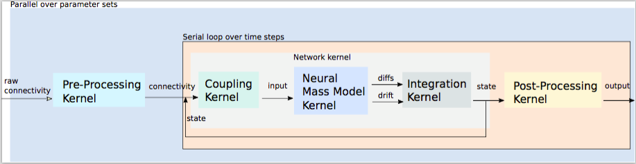 - The creation of an interface between the current front end of TVB and the low-level highly optimized and parallelized kernels for different models.