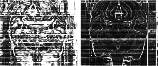 STA builds a matrix for each pixel, summarizing the predominant directions of pixel intensity gradients in its neighborhood. The energy value, i.e., the root of the sum of squared eigenvalues, of these matrices can be used as a measure of registration quality because low gradients result in low energy and vice versa.