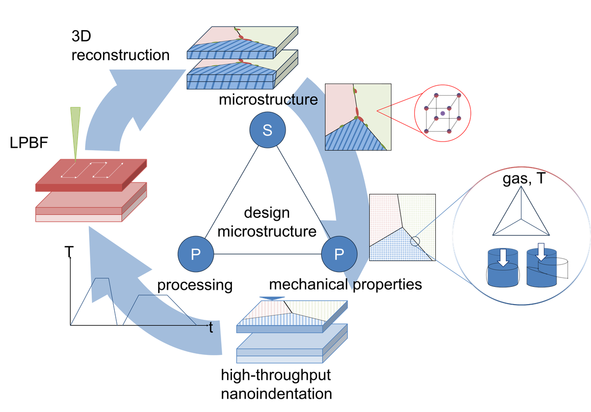High-throughput manufacturing and processing enable the rapid creation of materials with various microstructures. For example, additive manufacturing combining with powder metallurgy can produce microstructures with chemical gradients and variations in processing conditions such as temperature and heat-cooling rates.
