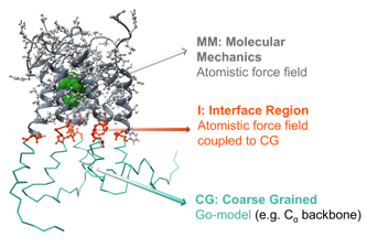 Because of the complexity of biological molecules, at times it may be convenient not to use the same description of the interatomic potential. Our group develops and applies hybrid methods spanning from quantum to coarse grain, assisted by machine learning.