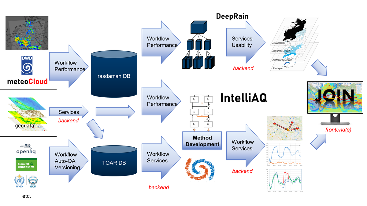 The research group Earth System Data Exploration (ESDE) develops innovative methods and tools for the integration and analysis of complex, heterogeneous, and big datasets related to air pollution, weather and climate. We work together with the Cross-Sectional Team Deep Learning and the Simulation Laboratories SL Climate Science and SL Terrestrial Systems to apply modern IT methods in order to advance the scientific analysis of earth system data from different observation systems and models. It benefits from FSD activities on federated data services.