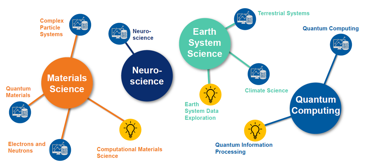 Materials science simulations face formidable challenges with respect to the extreme heterogeneity of the systems to be simulated, as well as the data, complexity and dynamics. Work focuses on pushing the limits of state of the art methods in terms of scalability, improving the numerical complexity and supporting the portability of high-performance codes between different computer architectures. Communities in the field materials science will find support by three Simulation and Data Labs. JSC hosts one research group in this field.