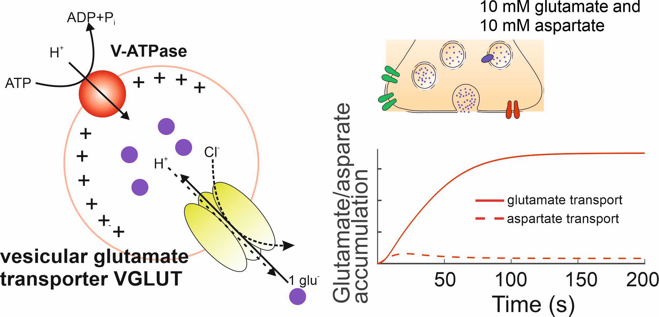 Chemical synapses are responsible for many of the unique features of our brain. They support communication between neurons using specialized signaling molecules called neurotransmitters. Neurons release neurotransmitters, which then bind and trigger new signals in the postsynaptic neuron, i.e. the neuron that receives the signal. Neurotransmitters are released by the fusion of little bubbles called vesicles to the cell membrane. Synaptic transmission requires the selective and effective filling of these vesicles by specialized neurotransmitter transporters.