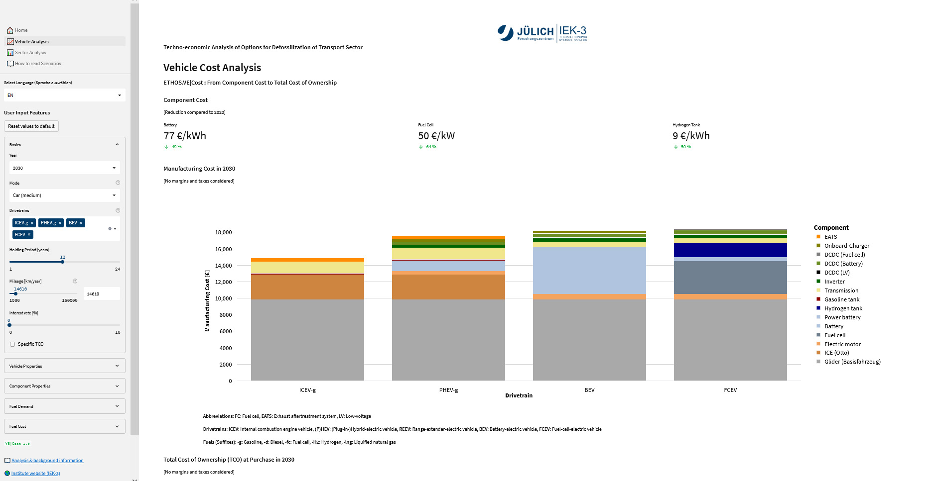 The Jülich researchers have made their traffic analysis models accessible in an interactive web tool. In addition to the constraints assumed by the experts, the tool also allows users to make their own assumptions and observe the effects on the cost development of the vehicles.