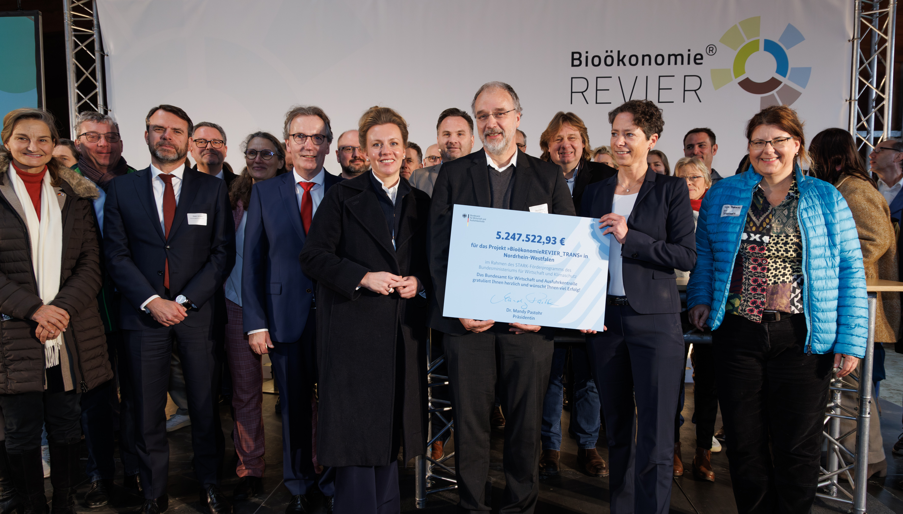 The BioökonomieREVIER transformation cluster project was officially launched on 24 February 2025 by Ina Brandes, science minister for the state of North Rhine-Westphalia (NRW), and Dr. Mandy Pastohr, president of the German Federal Office for Economic Affairs and Export Control (BAFA), the responsible funding authority of the Federal Ministry for Economic Affairs and Climate Action. The project, which is focused on creating value and training up personnel for a climate-neutral, resource-efficient economy, will in future receive € 5.83 million from the federal and state governments.