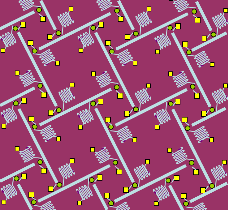 Detail from a two-dimensional integrated circuit component for error-tolerant quantum computing. The qubits are coloured green in the illustration.