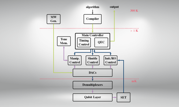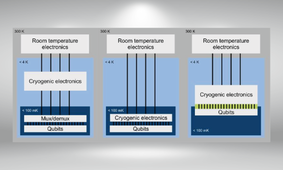 In this topic we strive for system solutions of future universal quantum computers. Intermediate demonstrator show the potential for the long-term scientific challenges ranging from scalable system concepts to System-on-Chip (SoC) implementations providing all control and readout functions at temperatures down to almost 0 Kelvin (-273.15 °C). All developments are driven top-down from the application and implemented bottom-up in accordance with industrial quality standards.