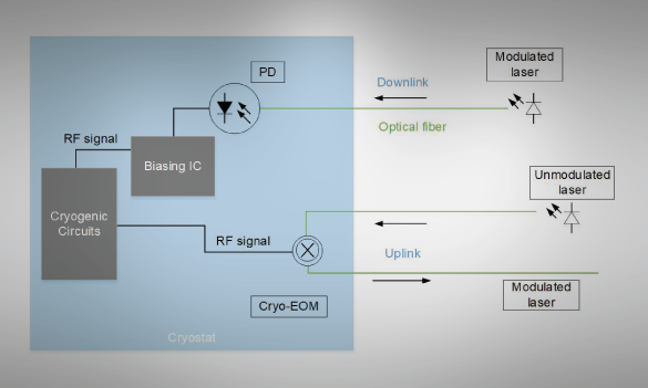 Our research and development activities are focused on innovative cryogenic electronics that can address the wiring bottleneck associated with the scaling of quantum computers. This approach brings classical control and readout electronics in direct vicinity to the quantum bits and down to the milli-Kelvin temperature stage.