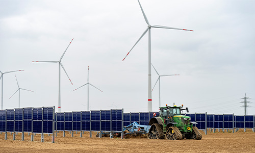 Agrivoltaics combines agriculture with the generation of solar power on the same area of land. Photovoltaic (PV) modules are installed above arable land, allowing food crops or renewable raw materials to be grown at the same time. This smart dual use reduces competition for land and makes an important contribution to climate protection, the energy transition, and the preservation of biodiversity.